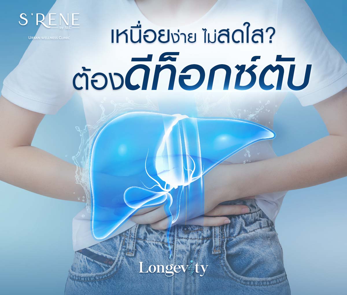 อย่าปล่อยให้ปัญหาตับเป็นอุปสรรคต่อการใช้ชีวิต ติดต่อสอบถามเพิ่มเติมหรือจองคิวปรึกษาแพทย์ผู้เชี่ยวชาญกับ S’RENE by SLC ได้แล้ววันนี้