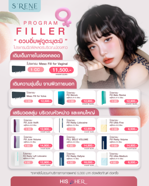 โปรแกรม ฟิลเลอร์น้องสาว Fill Her Feminine™ เป็นโปรแกรมที่คิดค้นและดูแลโดยสูตินรีแพทย์ที่เข้าใจถึงความกังวลของผู้หญิงอย่างลึกซึ้ง โปรแกรมนี้จะใช้สารเติมเต็มที่ออกแบบมาเพื่อฟื้นฟูและเติมเต็มบริเวณจุดซ่อนเร้น ช่วยแก้ปัญหาความหย่อนคล้อยและความแห้งกร้าน คืนความอวบอิ่ม กระชับ และความชุ่มชื้น เพื่อให้คุณกลับมามีความมั่นใจอีกครั้ง