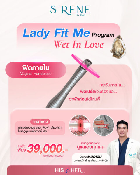 สำหรับสาว ๆ ที่เริ่มรู้สึกว่า “อุโมงค์รัก” ไม่ฟิตเปรี๊ยะเหมือนเก่า…ความชุ่มฉ่ำหายไป…และอยากให้ทุกกิจกรรมรักกลับมาเร่าร้อนเหมือนสมัยสาวแรกแย้ม! โปรแกรม Lady Fit Me – Wet In Love คือ “ไม้กายสิทธิ์” ที่จะเสกให้คุณกลับมา ฟิตแน่น และ ฉ่ำน้ำ จนคนรักของคุณต้องหลงใหลอีกครั้งค่ะ