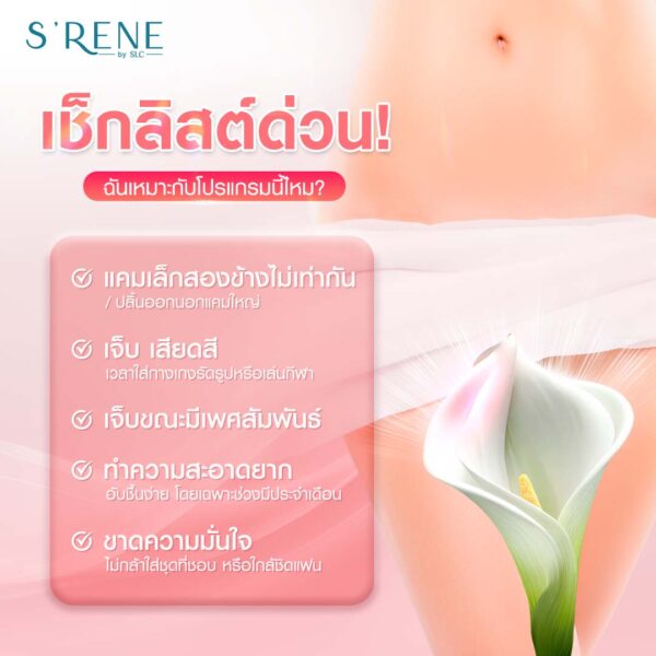 S’RENE by SLC เลยจะพาทุกคนมาทำความเข้าใจ และชวนให้หันมาใส่ใจกับสุขภาพ และรูปลักษณ์ของน้องสาว ถึงเวลาแล้วที่จะมาปลดล็อกความกังวล! กับ โปรแกรม ตัดปีกผีเสื้อ (Seamless Labiaplasty Program) ที่จะช่วยให้กลับมามีความมั่นใจอีกครั้ง แบบไม่ต้องนอยด์กับปัญหาเดิม ๆ