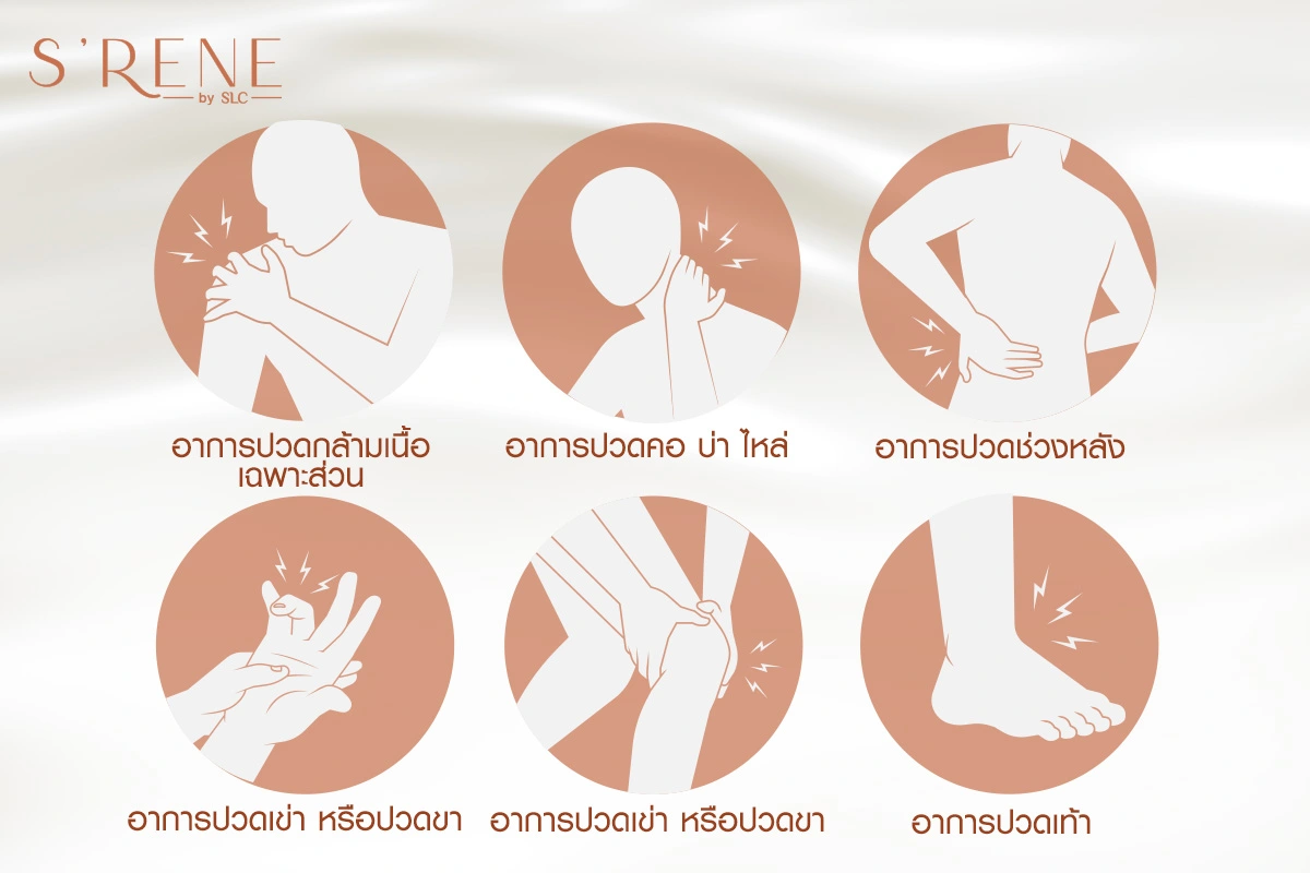 อาการปวดกล้ามเนื้อ (Muscle pain) เป็นอาการที่พบได้บ่อยๆ ในคนทุกเพศทุกวัย โดยอาจเกิดขึ้นได้จากหลายสาเหตุ ทั้งจากการบาดเจ็บ การใช้งานกล้ามเนื้อมากเกินไป หรือจากโรคบางชนิด อาการปวดกล้ามเนื้ออาจเป็นอาการที่ไม่รุนแรง และหายได้เองภายในไม่กี่วัน แต่ในบางจุดก็อาจเป็นปัญหาเรื้อรัง เดี๋ยวเจ็บ เดี๋ยวหาย แบบหาสาเหตุไม่ได้ โดยที่ S’RENE by SLC จะมีนักกายภาพบำบัด และแพทย์ผู้เชี่ยวชาญ มาประเมินจุดกดเจ็บ (Trigger Point) หรือจุดปวดที่ไวต่อการกระตุ้นของกล้ามเนื้อ แล้วค่อยทำการรักษาด้วยโฟกัสช็อกเวฟ จะเข้าไปกระตุ้นกล้ามเนื้อให้เกิดการซ่อมแซม และบรรเทาอาการปวดได้ดีขึ้นอย่างเห็นได้ชัด และจะค่อยๆ ดีขึ้นเรื่อยๆ ตามลำดับ แต่ถ้าอยากให้หายขาดจากอาการปวดเรื้อรังจริงๆ อาจจะต้องมาทำการรักษาอย่างต่อเนื่อง และปรับพฤติกรรมในการใช้ชีวิตด้วย